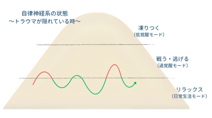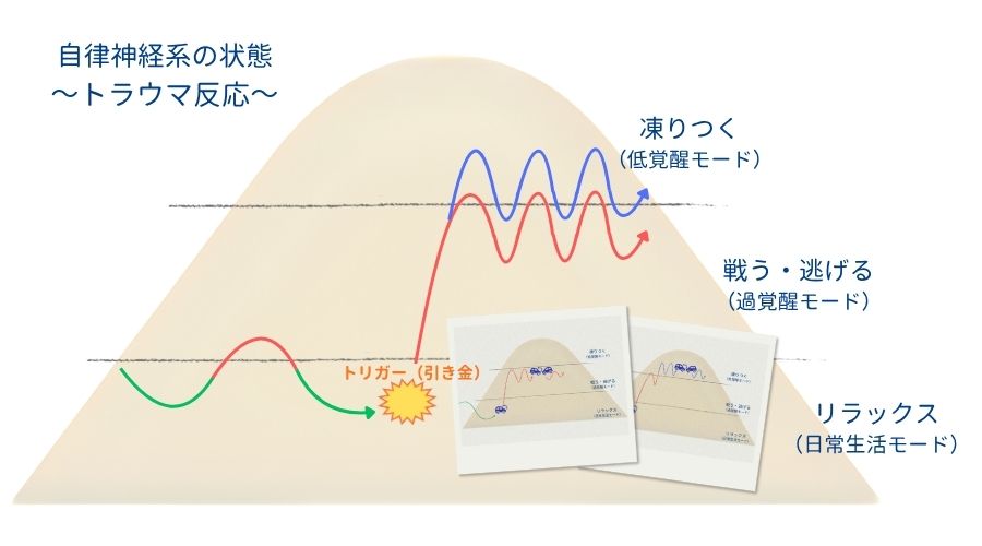本来であればまったく危険のない状況であっても、神経系が過敏に働くことで、感情が揺さぶられたり、身体が緊張したり、不安や恐怖が込み上げてきてしまうのです。