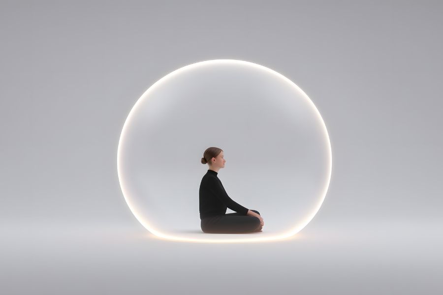 この体を通して様々に体験されるものを意識的に包み込み観察していると、わたしの場合はちょうど丹田(おへその下あたりのお腹)あたりから落ち着いた感覚が湧いてきて広がっていくのを感じます。この感覚と共にいると身体に起きていることを静かに観察することができて一般的にいうグラウンディング、地に足がついた状態へ落ち着きます。